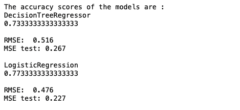 We can see that logistic regression performs better than DecisionTreeRegressor therefore we will use it for our further prediction