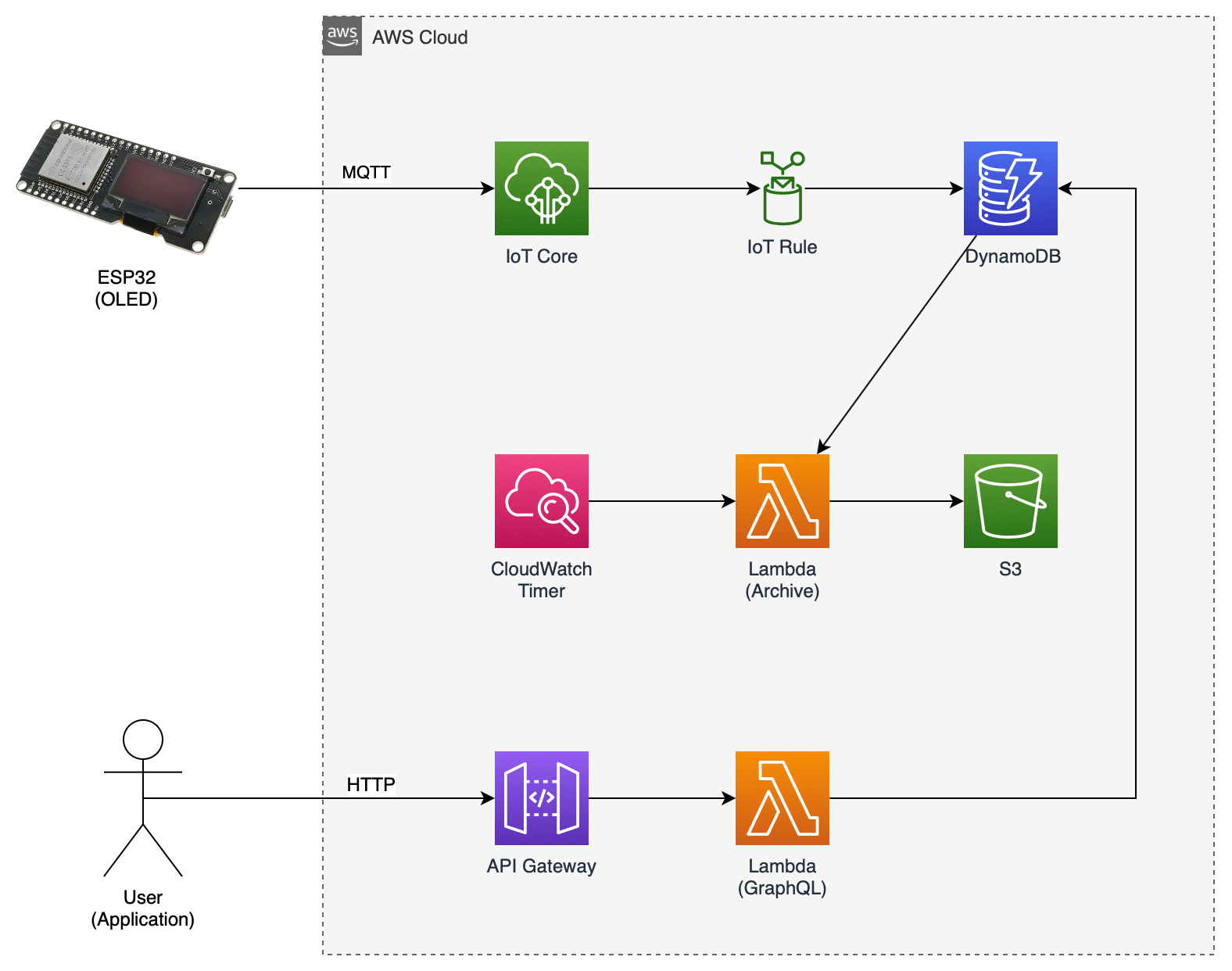 - The ESP32 has a MQTT connection with AWS IoT Core