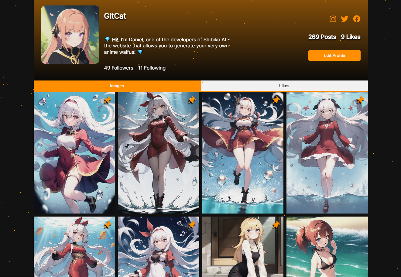 Shibiko AI is a Full-Stack web application that incorporates various technologies such as Node, Python, Express, SQL, React, Redis, Pytorch, Stable Diffusion, Discord Bot, Twitter, and more. Overall, Shibiko AI offers an exciting way for users to generate custom anime-style images and interact with fellow community members creations. Moreover, the application includes a social media element where users can interact with each other. This includes following other users, visiting profile pages, checking other users' followers, liking, and sharing images.
