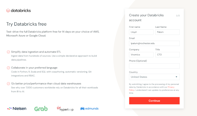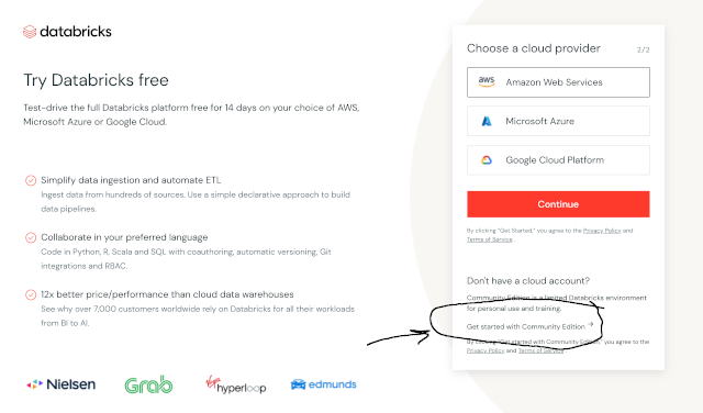 - THE SELECTION OF THE DATABRICKS COMMUNITY EDITION LINK AT THE BOTTOM OF THE FORM... DO NOT SIGN UP FOR THE FULL VERSION!