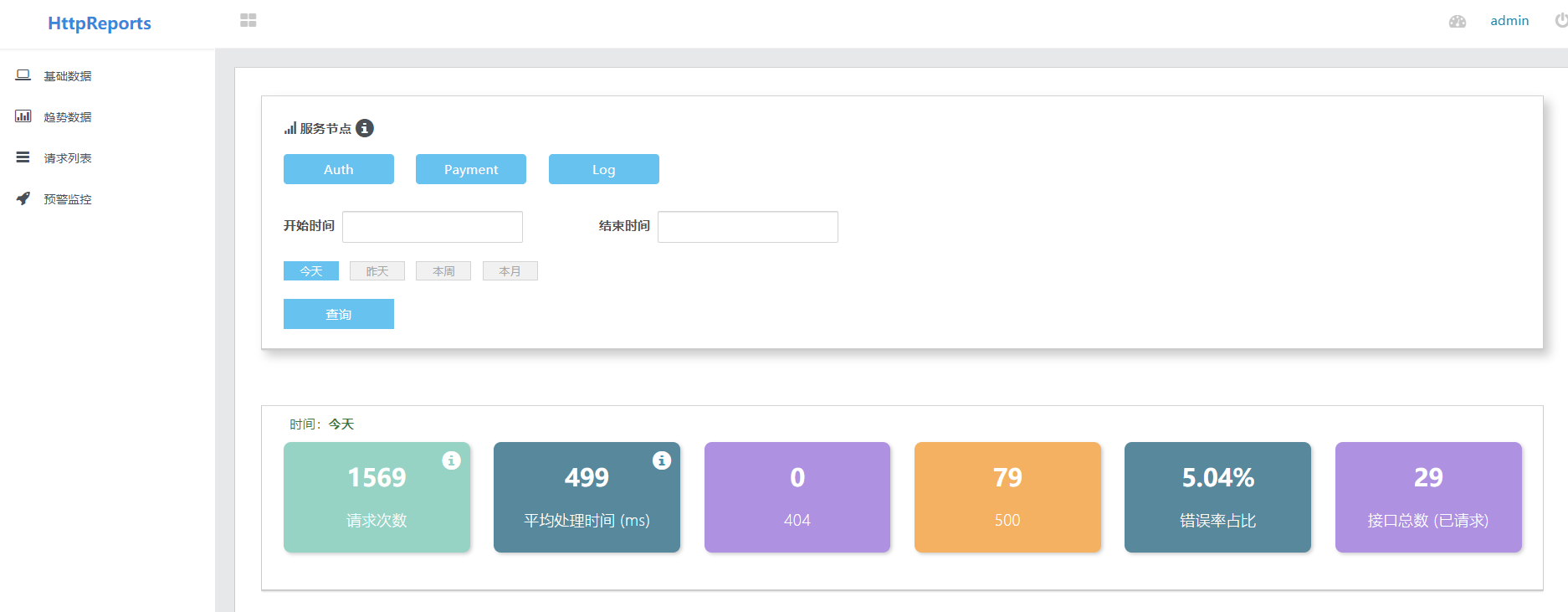 HttpReports 是 .Net Core 下的一个Web项目, 适用于WebAPI,Ocelot网关应用,MVC项目,非常适合针对微服务应用使用,通过中间件的形式集成到您的项目中,可以让开发人员快速的搭建出一个 数据统计,分析,图表,监控 一体化的 Web站点。