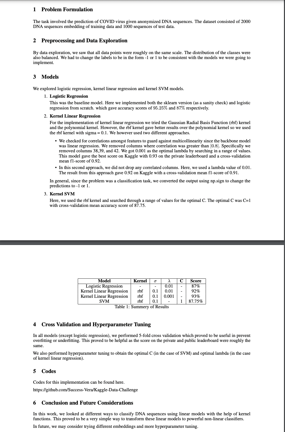 The competition is about detecting the presence of COVID Virus using DNA sequences of an individual.