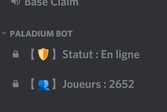 Le seul bot Discord qui vous permet d'avoir des salons avec les statistiques du serveur Paladium !