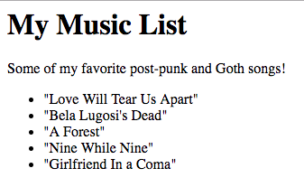 A problem with our content is that it doesn't explicitly state anywhere that it's a list. In the example, we see a list of songs. But a browser doesn't know what a "list" is.