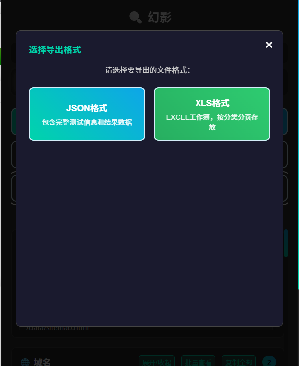- 导出能力:支持 JSON 与 Excel(.xls XML 格式)两种导出