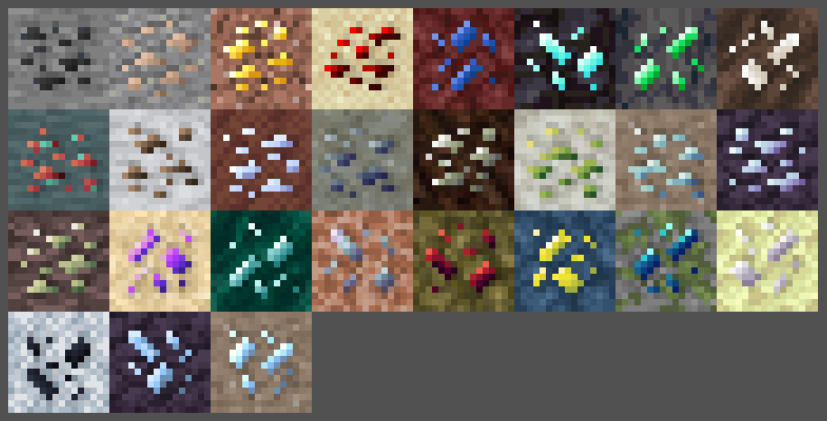All blocks, and items have been properly Forge tagged, and have all the basic recipes. This mod also includes a world gen of ores that match the strata provided by other mods such as Create and Quark.