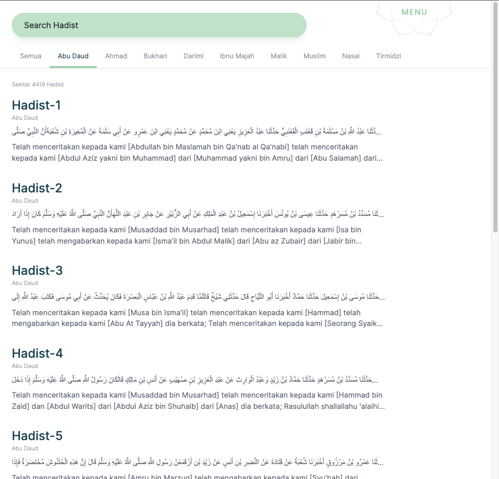 - Hadist: Hadith API