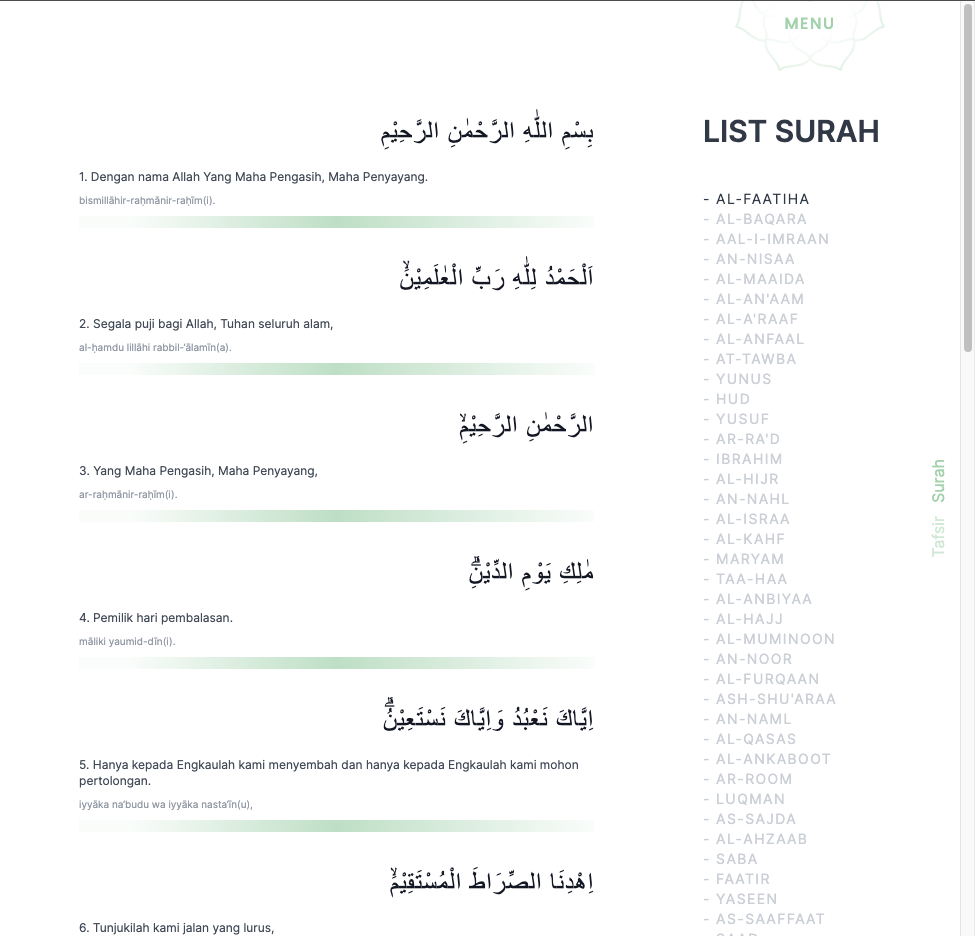 - Al-Quran: Al-Quran API dan EQuran API