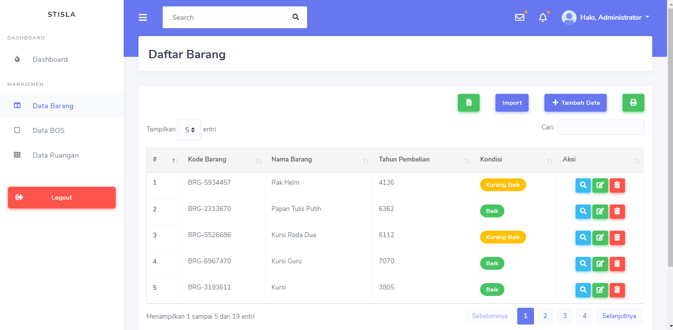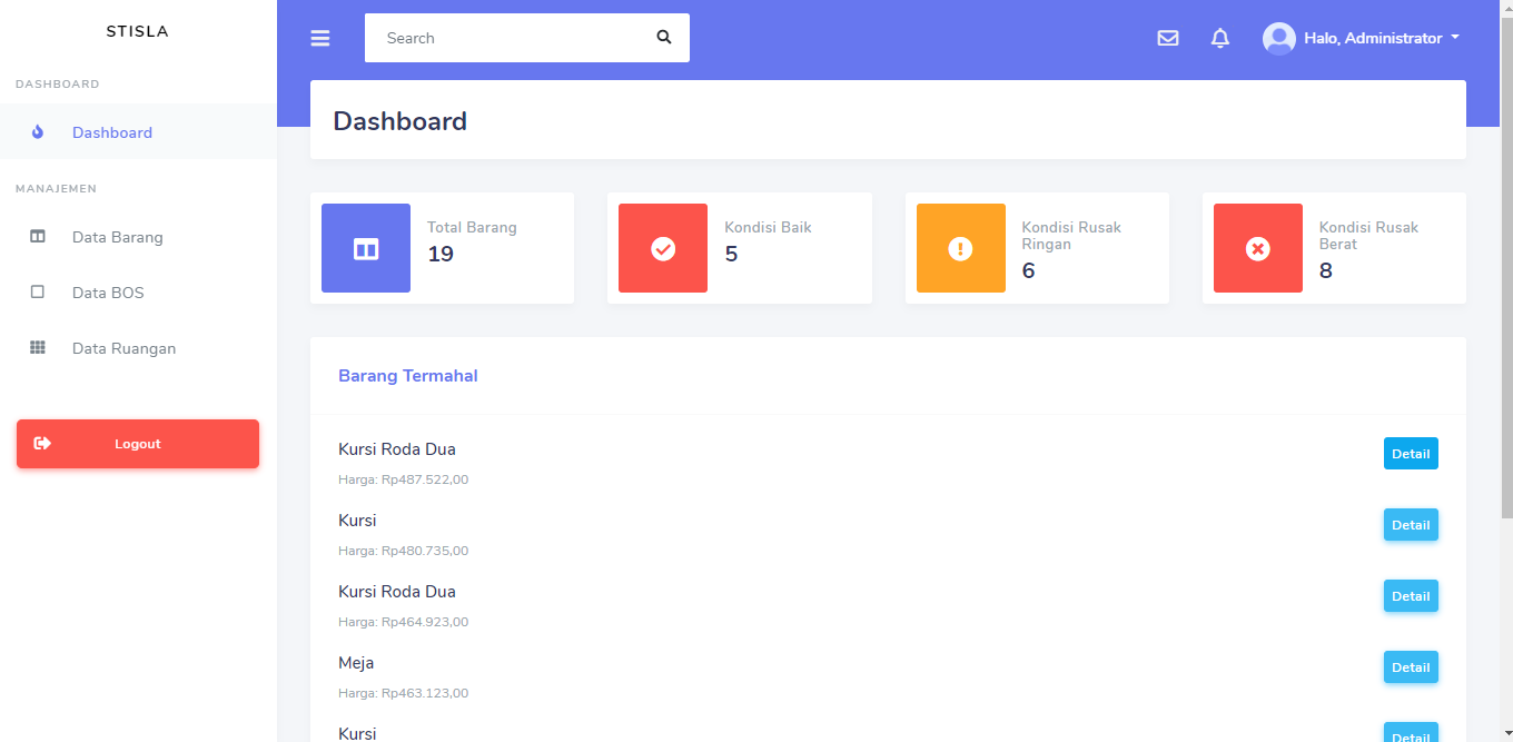 Aplikasi inventaris barang sekolah menggunakan Framework Laravel 7.