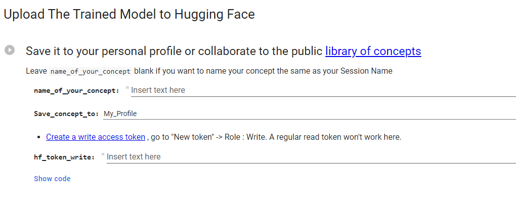 3. The huggingface token I used early on in the training is already set to write, can I use that on the form there.