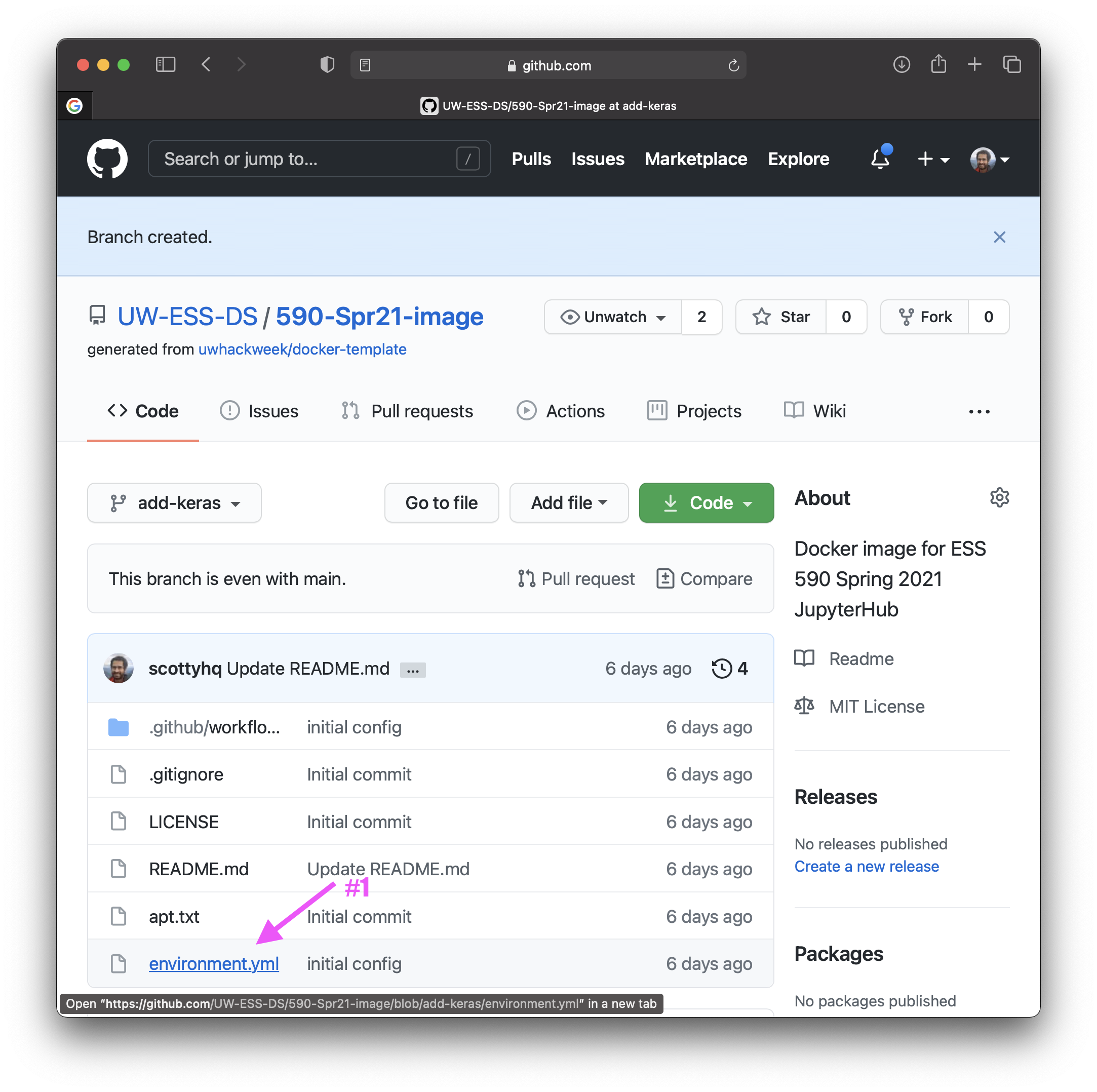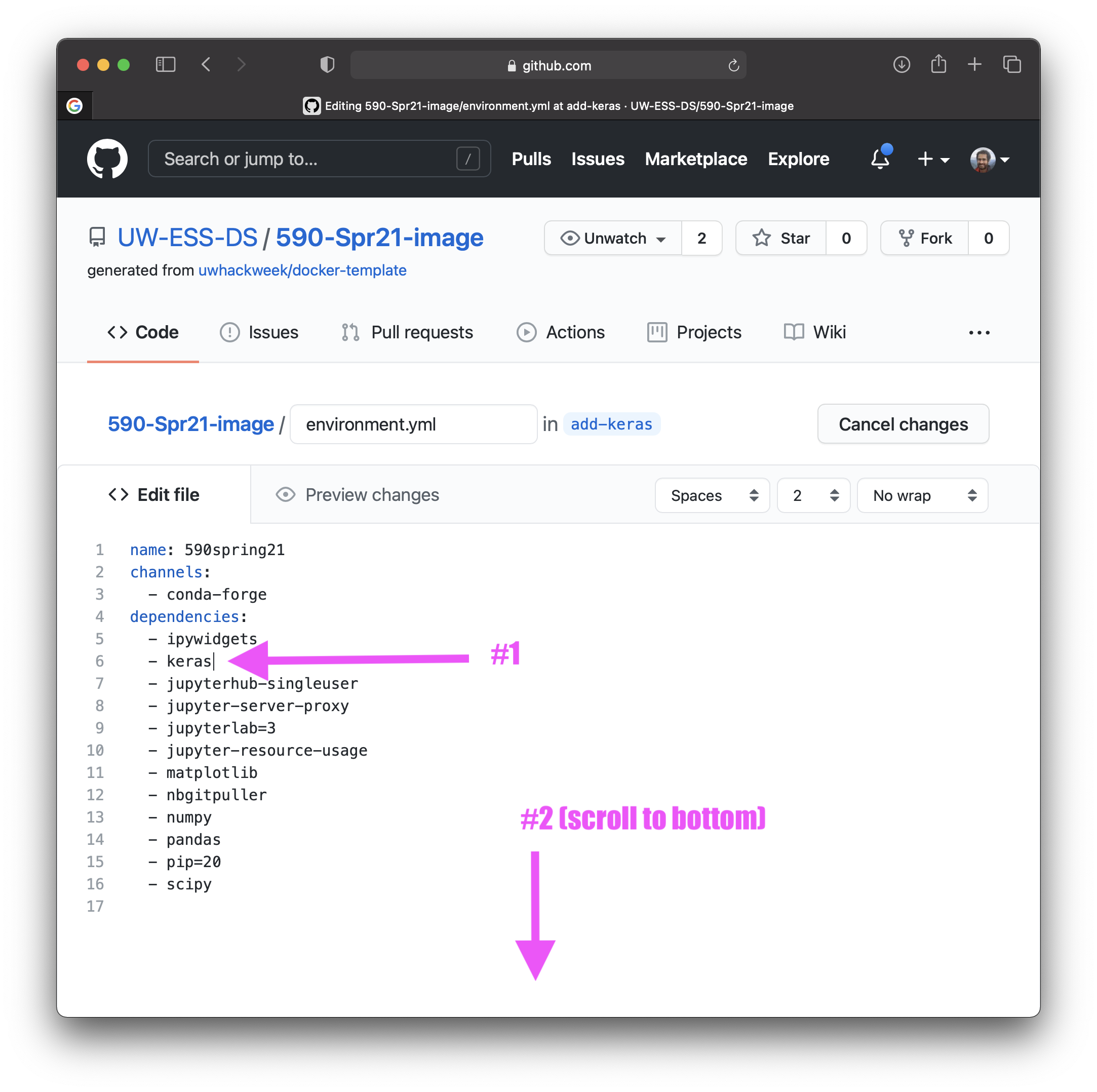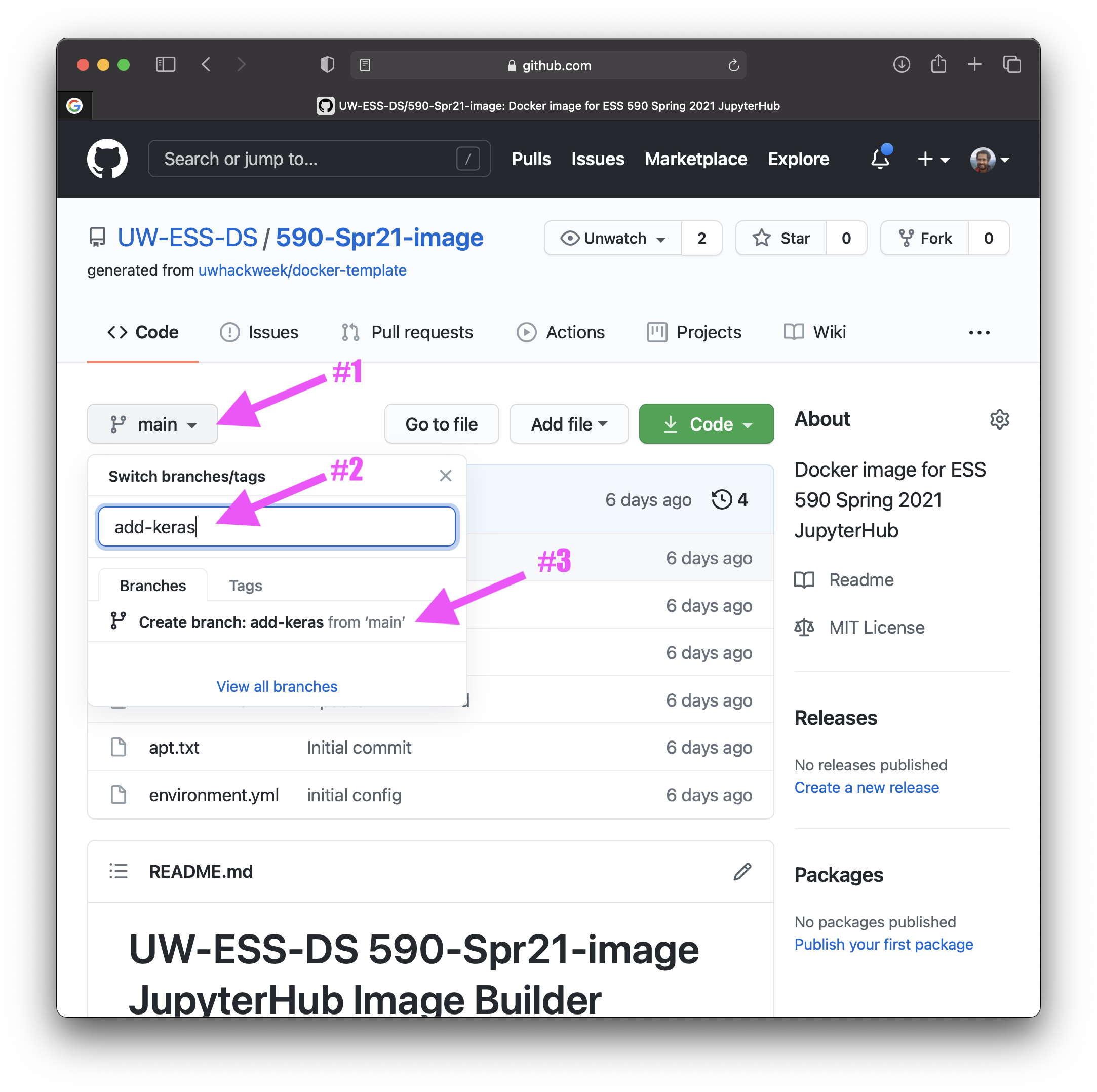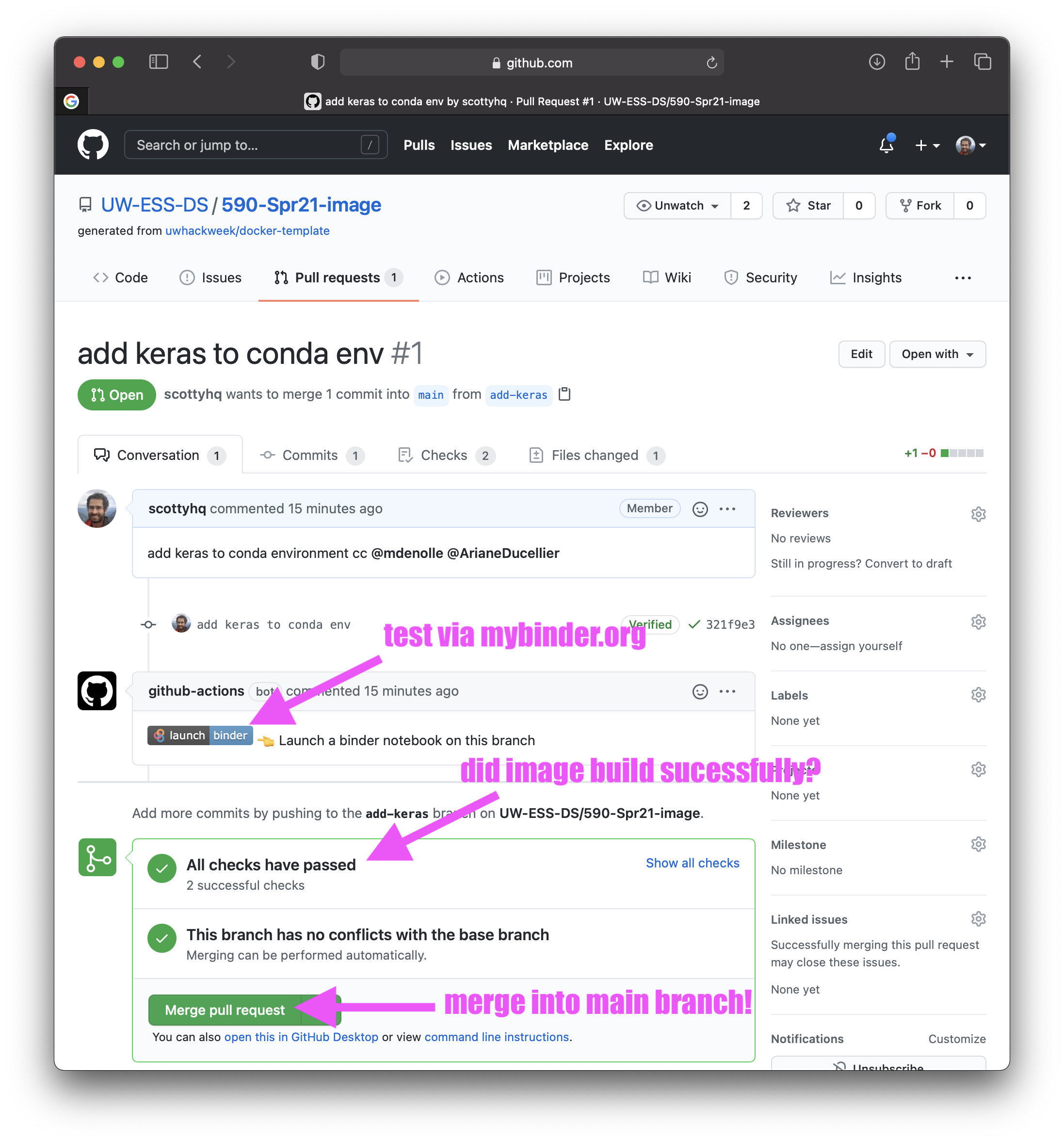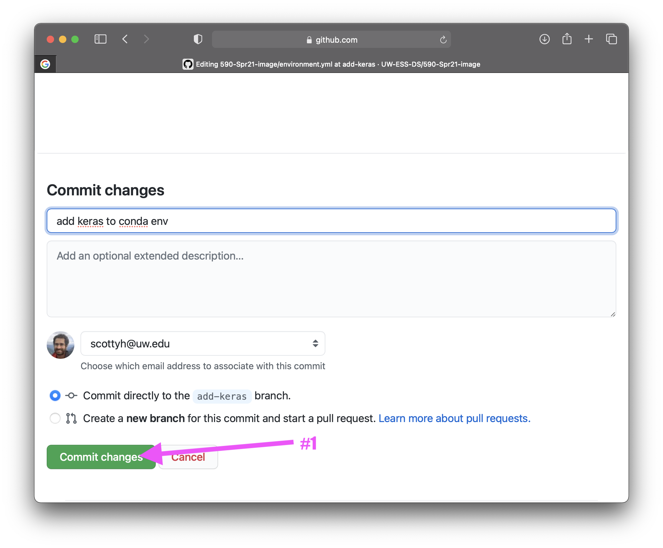 - go to main page (https://github.com/UW-ESS-DS/590-Spr21-image/) and create a pull request: