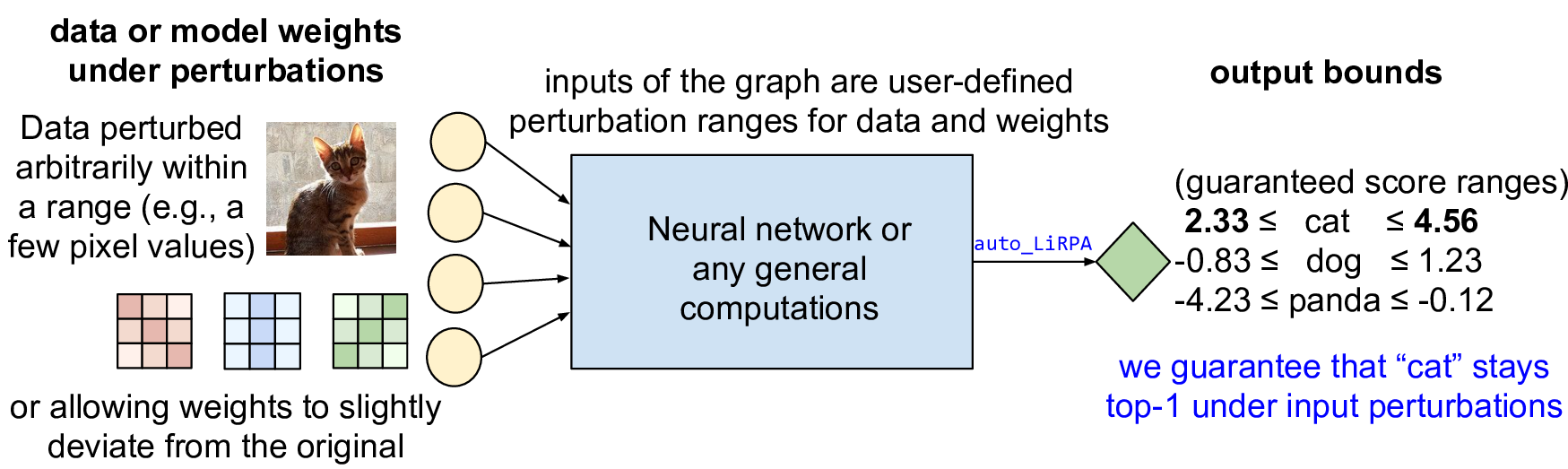 auto_LiRPAas its core library) won VNN-COMP 2023. (08/2023) - Bound computation for higher-order computational graphs to support bounding Jacobian, Jacobian-vector products, and local Lipschitz constants. (11/2022)