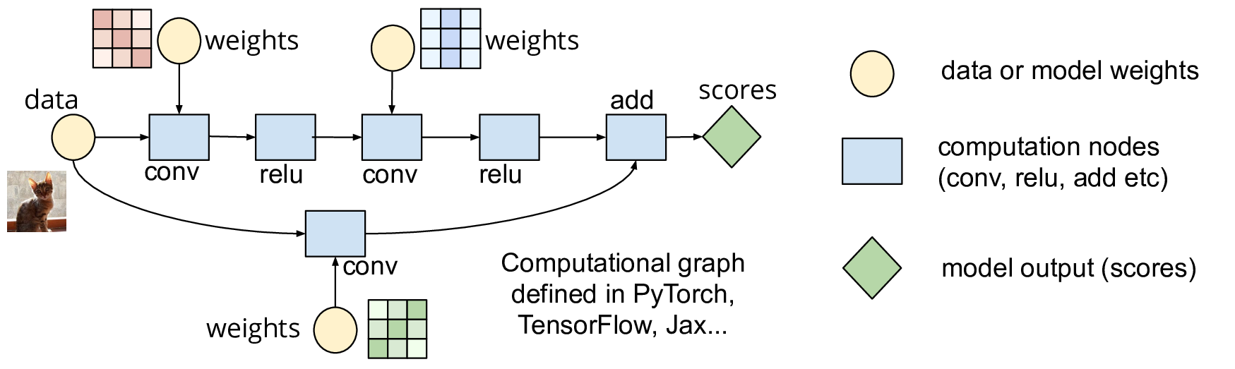 Deep learning frameworks such as PyTorch represent neural networks (NN) as a computational graph, where each mathematical operation is a node and edges define the flow of computation: