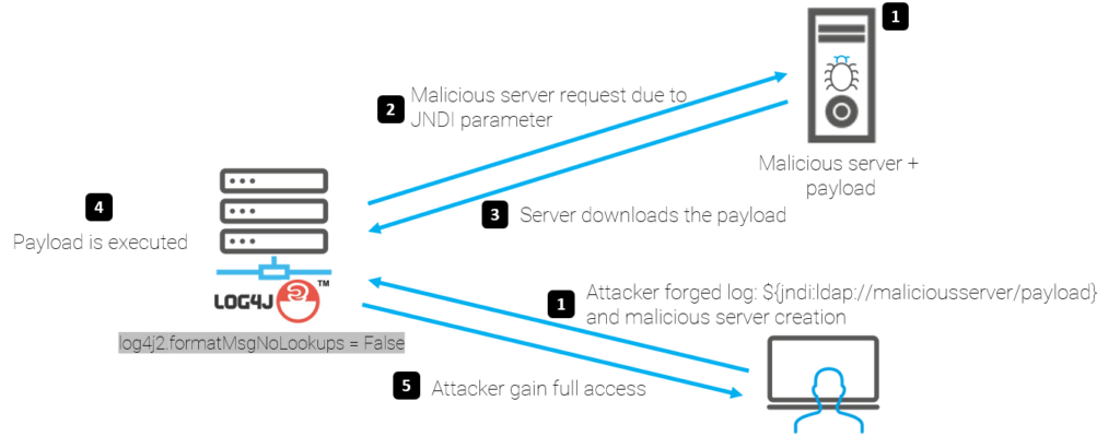 Lorsque log4j va vouloir journaliser une donnée utilisateur (un message dans un chat, un champ dans un formulaire, ..) plutôt que prendre la donnée au format texte pour la journaliser, log4j va l'interpréter en langage java résultant de la faille de sécurité.
