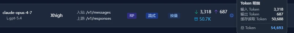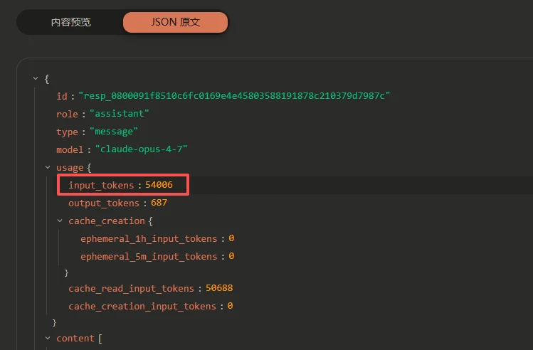 input_tokens应该是要先减去缓存读的token数也就是 54006 - 50688