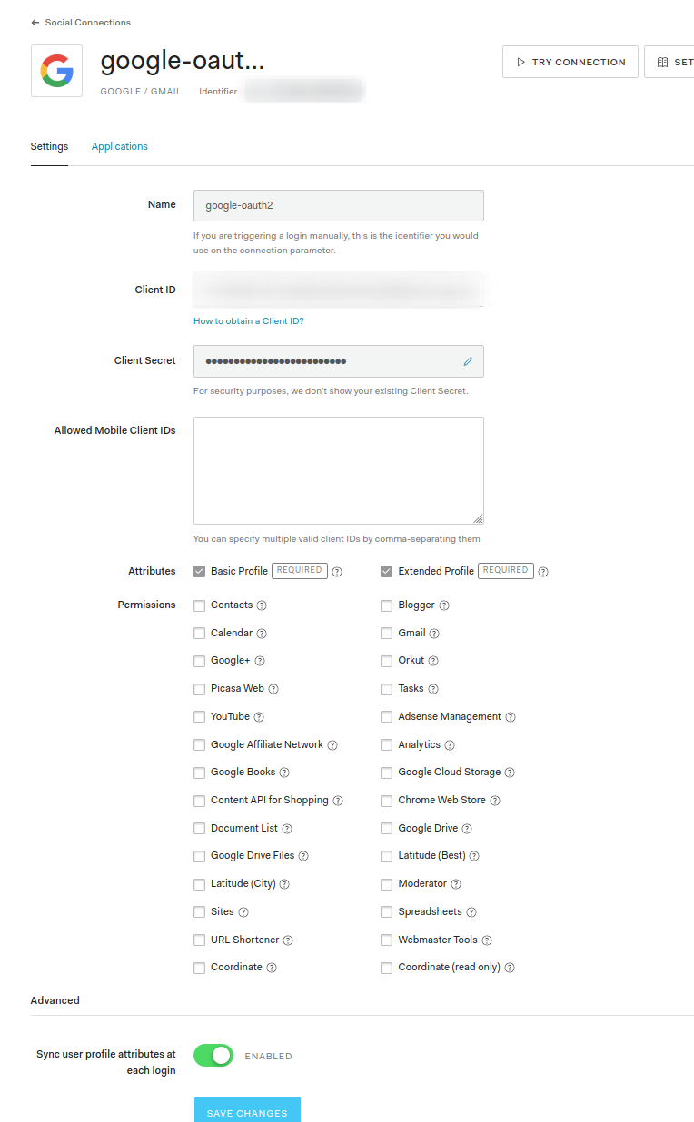 Only social connection with google Enabled: