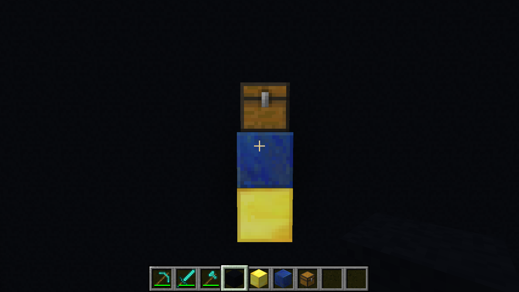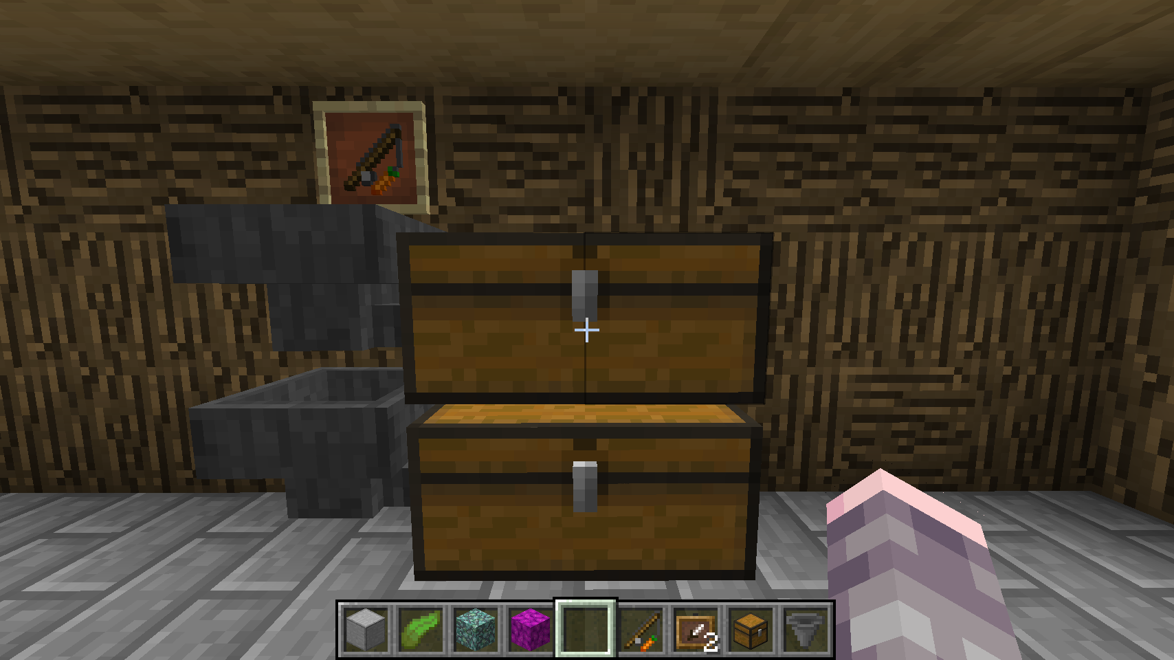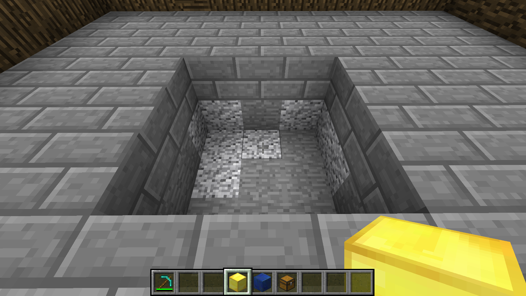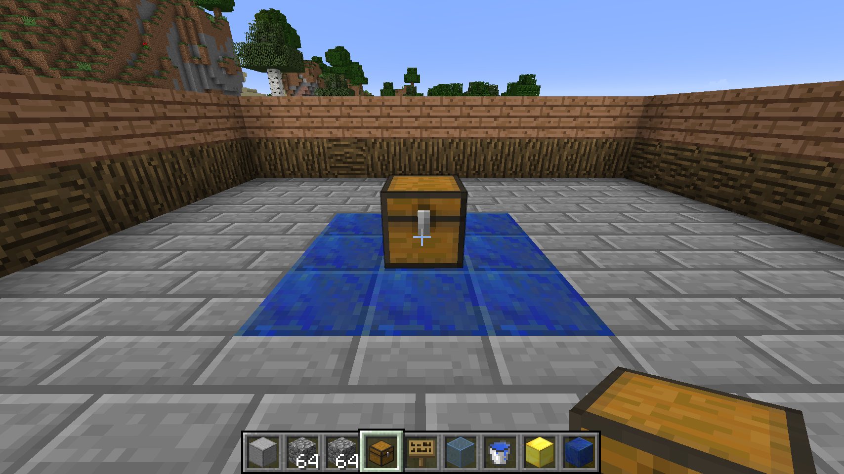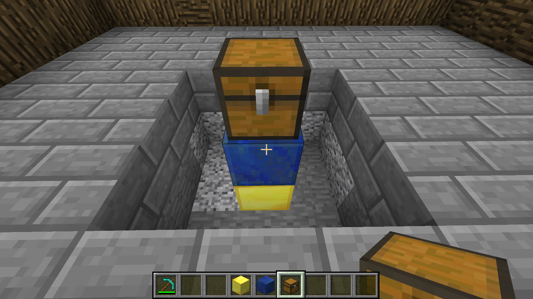 Then add the blocks and chest, with the chest sticking up just above the floor level: