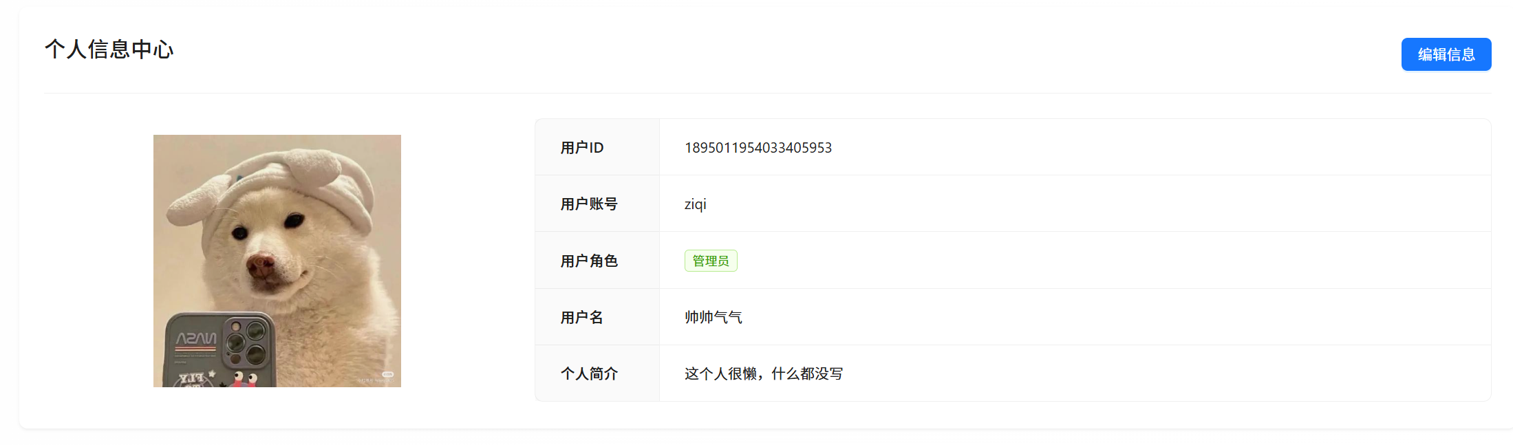 个人用户可以查看自己的个人信息,并可以根据需要进行修改