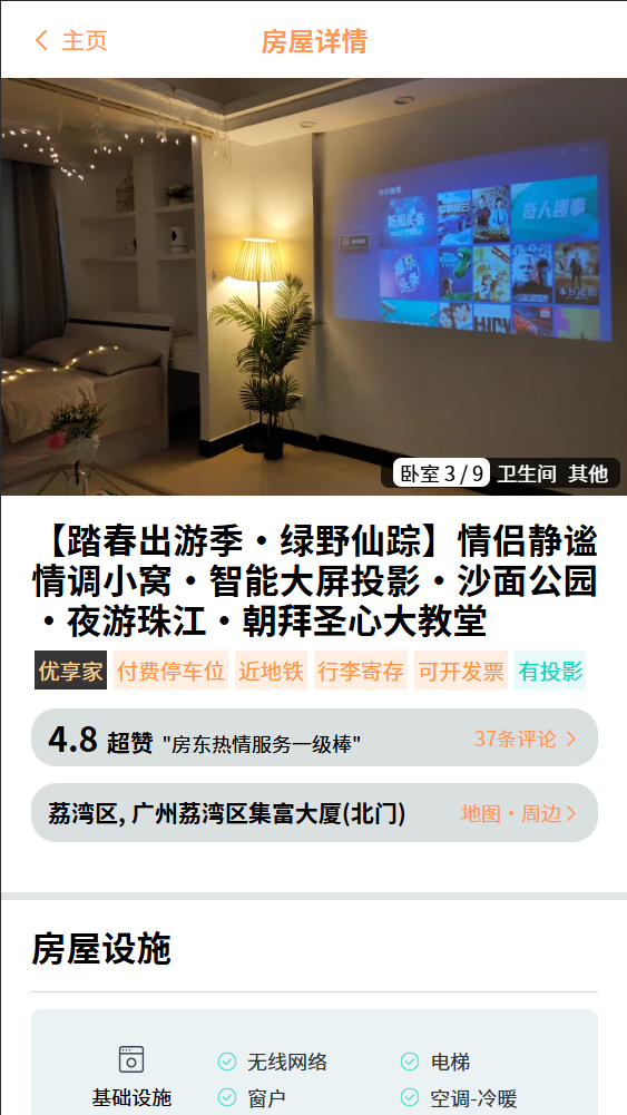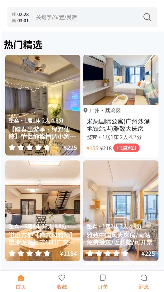 奇遇旅途 | 移动端租房项目 项目介绍 本项目是基于Vite + Pinia + Vant 3 编写的模仿某民宿网站的移动端页面。 项目基本页面展示 项目启动 npm install Compile and Hot-Reload for Development npm run dev Compile and Minify for Production npm run build