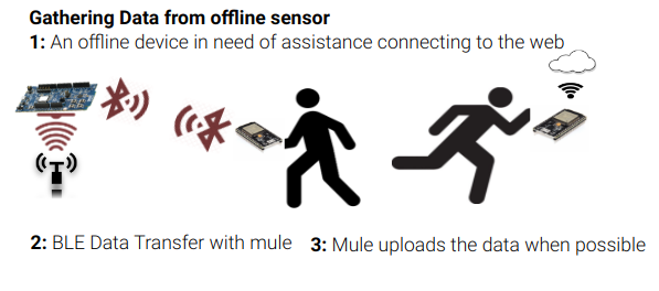 Retrieving data from an offline sensor using a data mule.