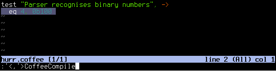After making some changes in insert mode, hit escape and the CoffeeScript will