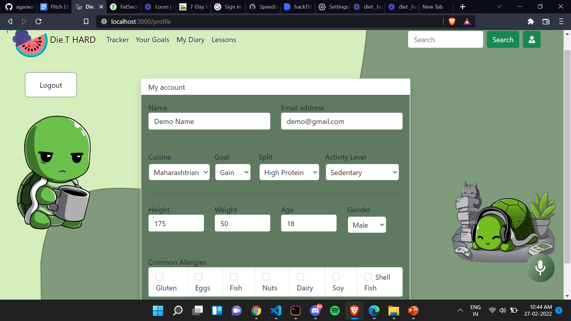 Here at die.t_hard , all the meal prep plans are heavily personalized and customizable to make sure the Indian user attains his/her fitness goals by utilizing local Indian food items for its users . Not only that it also provides basic lessons which would be useful for its users .