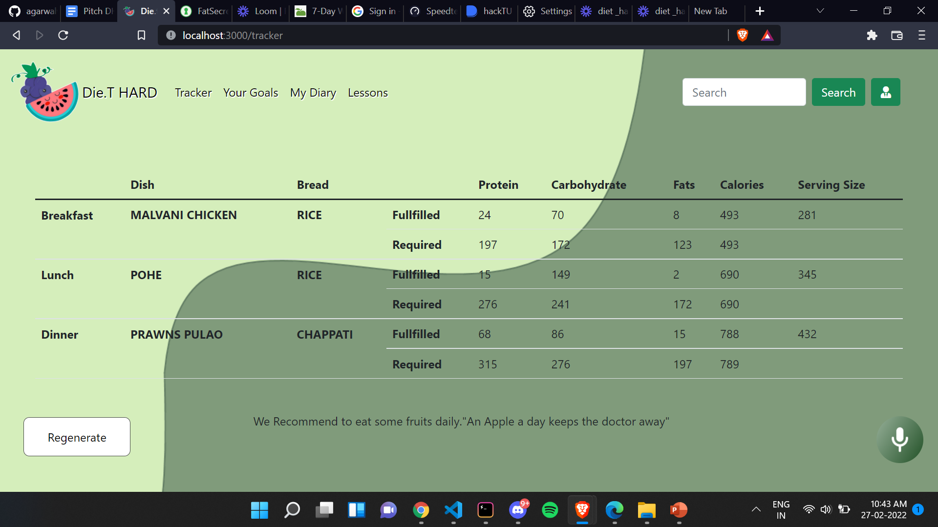 One of the main reason why they are unable to formalize a meal plan is a lack of simple and relatable resource for forming their meal plans. Most of the online resources which aid the formation of personalized diet plans for its users , are framed to be only useful for foreign markets and not for India, as the meals in the daily routine barely contain ingredients that the regional market is familiar with.