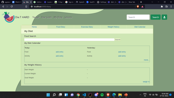 Thus, we have categorized the Indian dishes into local, regional dishes. The user can choose from a wide variety of dishes of his/her own preferred locality (Maharastrian , Kashmiri, Goan etc) and the algorithm sets up their meal plan amongst the chosen category with caloric and macronutrient constraints. We have also added a food and exercise diary where user can manually input their desired food item or exercises and which will be analysed, from which the user can track their progress anytime, daily, weekly , monthly etc …like a diary.