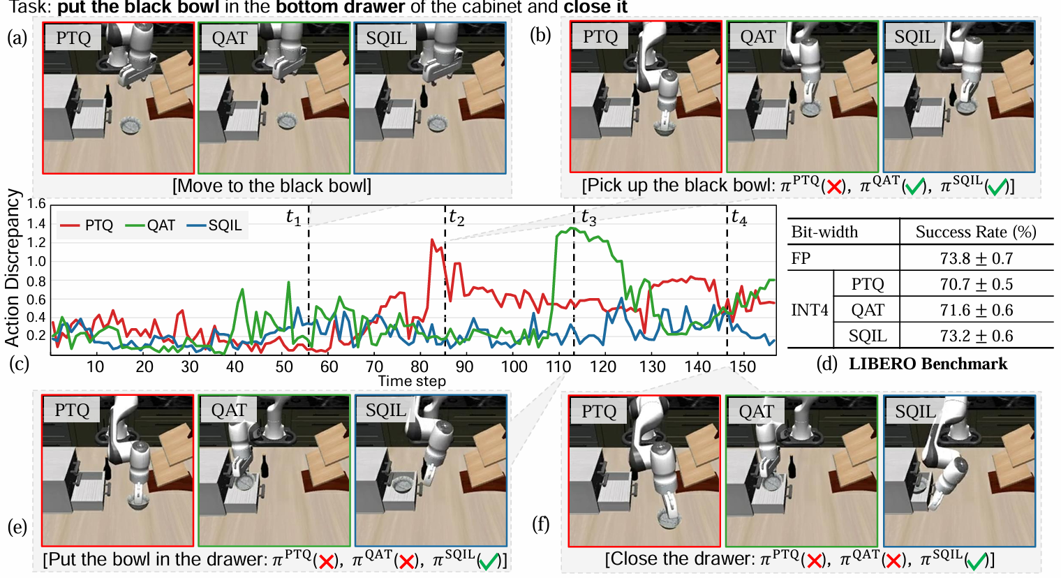 SQIL is the first systematic study of Quantized Imitation Learning, revealing that most quantized failures occur at mission-critical states requiring fine-grained control. By leveraging policy-driven saliency (SIS) and a SIS-weighted 4-bit QAT scheme, SQIL achieves 2–4× efficiency gains while preserving full-precision-level success rates across real-world robotics, autonomous driving and physics simulation.