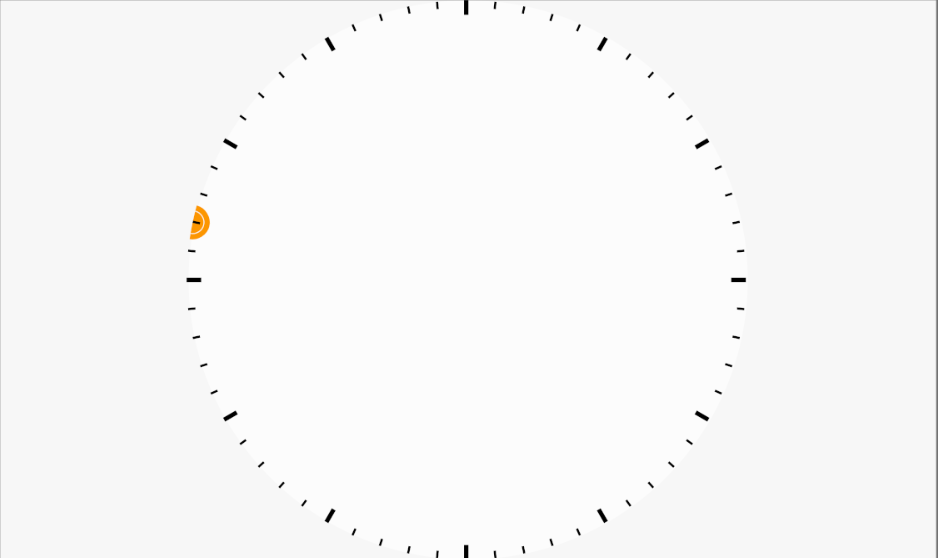 Shows the position of the sun according to its HA (Hour Angle). Shown with a small orange circle. In this case, -77º (0 is noon)