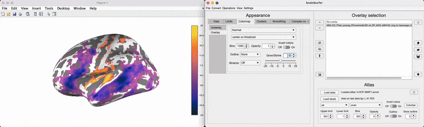 Note, BrainSurfer comes with some other save states for quickly loading fsaverage templates other than the inflated version that gets automatically generated when using the GUI buttons.