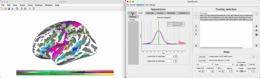 One issue you might run into is that BrainSurfer always splits CIFTI files into left and right hemisphere overlays (if both are available). So what do you do if you load a CIFTI file, alter the two overlays it makes up in BrainSurfer, and then want to save the changes? Unfortunately, you'll have to separately save each of those two overlays as CIFTI files. However, after saving them, you can merge them into one single file using the option in file --> combine saved CIFTI files.