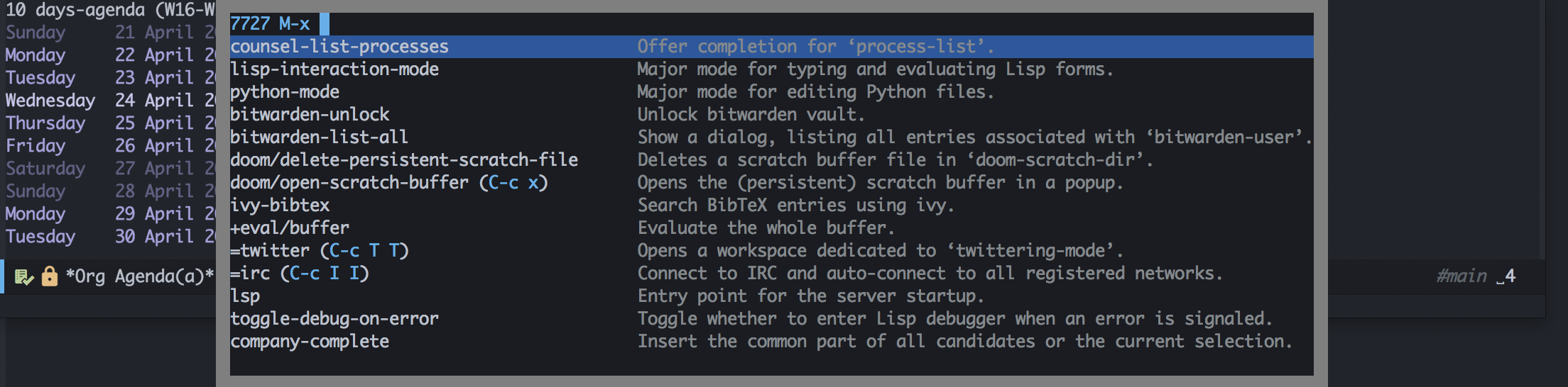 This is a screenshot of the buffer that is launched when the code is just (buffer-fns . (counsel-M-x))