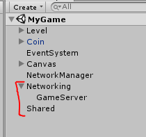 Create a new empty game object as a child of **Networking **object and call it GameServer