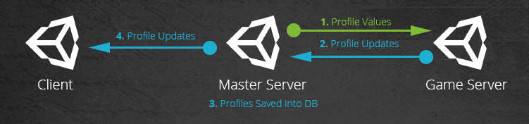 When a player joins game server, game server can obtain players profile, make changes to it, and those changes will be sent to Master server.