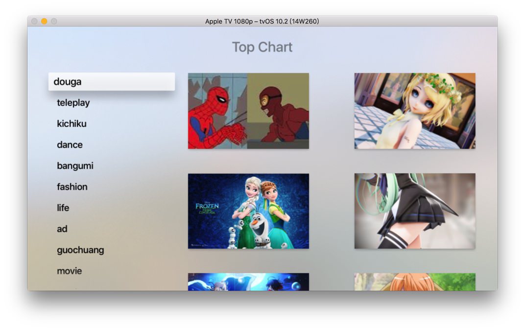 BiliBite is the first (and the only so far) Bilibili client on Apple TV. This project is mainly written in JavaScript using Apple's TVML framework, but a little bit of native Swift code is also used due to the lack of JavaScript APIs provided by Apple.