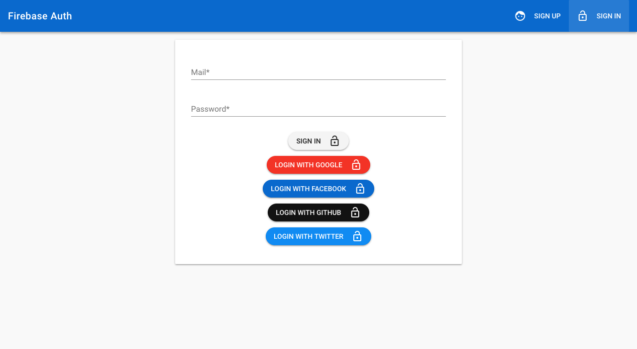 Firebase Auth Provides Method Email/Password,Google,Facebook,Github,Twitter Enabled Firebase console