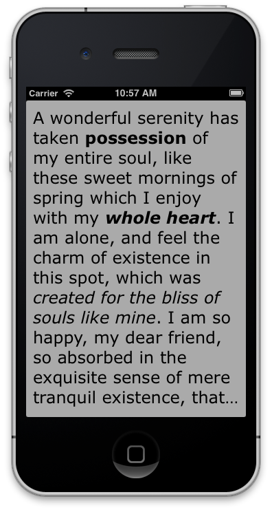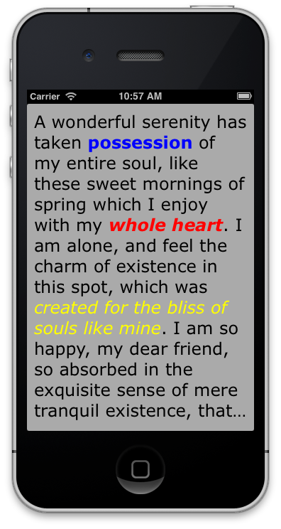 With CoreTextLabel you are able draw NSAttributedString or HTML with custom font and color in iOS (>= 5.0) applications. numberOfLines and truncation (NSLineBreakByTruncatingTail) is also supported.