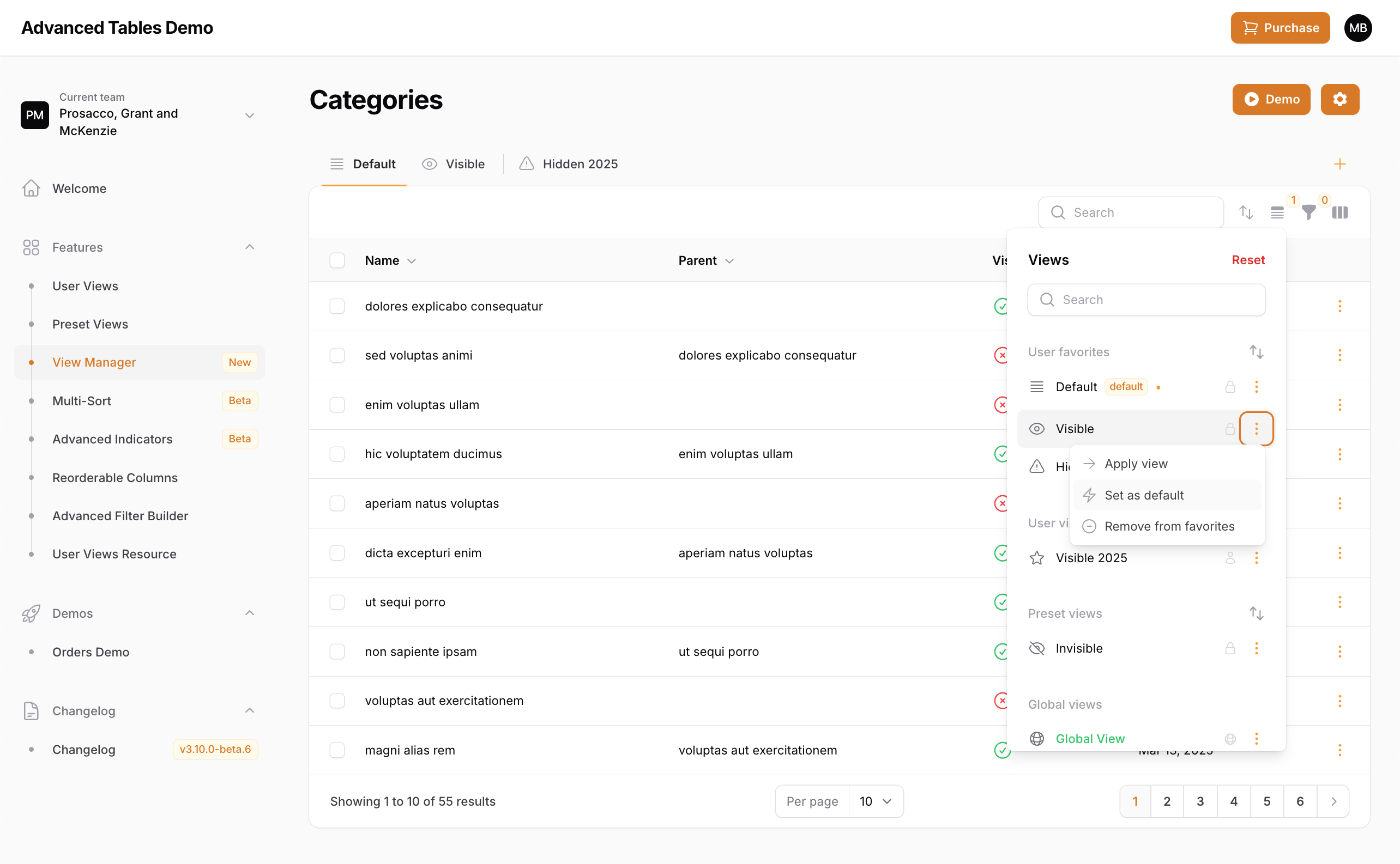 Advanced Tables (formerly known as Filter Sets) is a premium plugin for Filament that supercharges your tables with powerful features like user customizable views, enhanced filter tabs, reorderable columns, convenient view management, filter builder, and more.