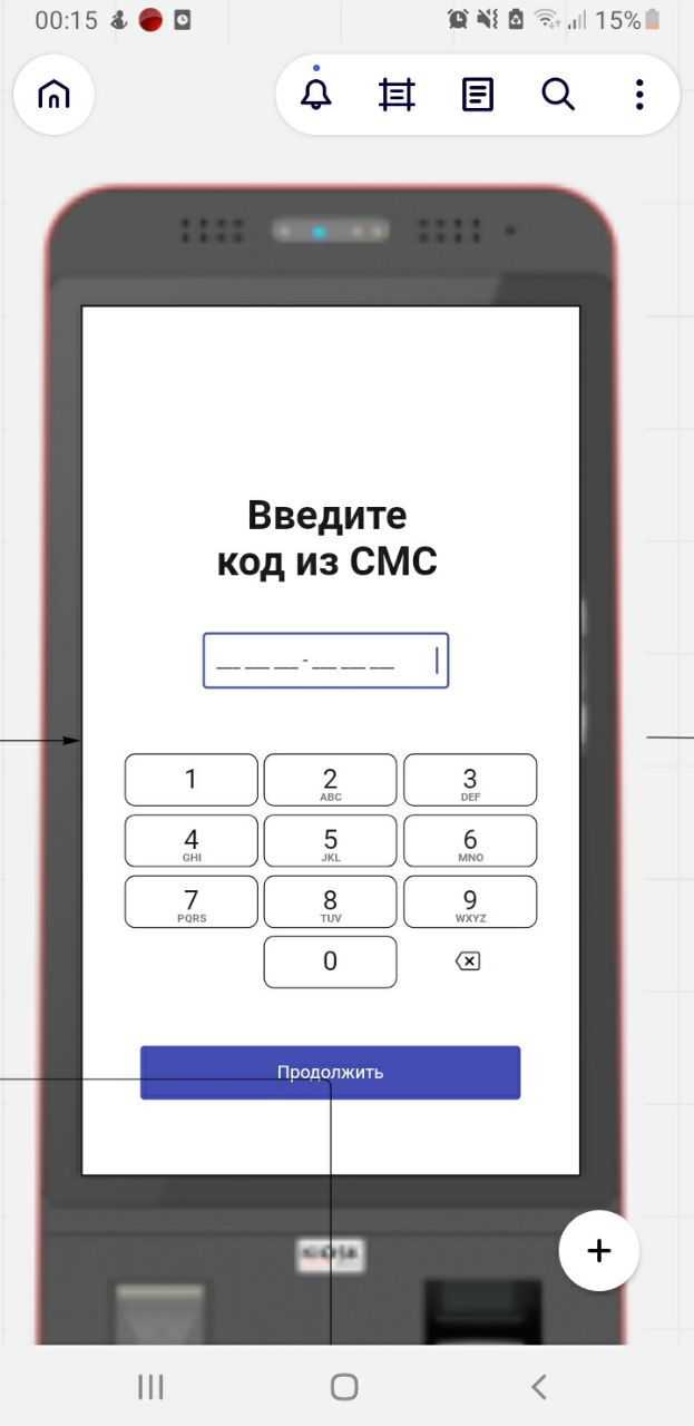 Фронтенд: Можно адаптировать под десктоп сам белый фон. Элементы управления можно взять из скриншота или используя похожие кнопки из свободных источников изображений. Выравнивание всей группы кнопок и полей по центру экрана (какой бы формы не был экран, его размер и положение) В случае открытия на смартфоне (как и в киоске), включается вариант для мобильного устройства с адаптированной под вертикальный экран разметкой/выравниванием (важно сделать подгрузку нужной страницы в зависимости от того десктоп или смартфон, вёрстка может быть одинаковой по сути в конкретном данном случае для упрощения реализации тестовой задачи) Кнопки должны вводить соответствующие цифры в поле ввода без обновления страницы Кнопка Стирания должна стирать цифры по одной за одно нажатие Кнопка Продолжить Должна отправлять код на бэкенд на Точку входа /sms В случае "правильного" кода поле ввода (фон) должен подсветиться зеленым (после проверки через сервер) В случае "ошибки" (получаемой от сервера после проверки) фон поля ввода подсвечиваем красным Бэкенд: Должна быть реализована псевдофункция "Обработки присланных кодов". "Правильный" код может быть жёстко задан в коде функции например 654-321 (в рабочей версии будет подключена функция генерации кодов с параллельной отправкой реальных SMS на телефон пользователя) На вход в функцию передаём код на проверку, ответ функции true/false