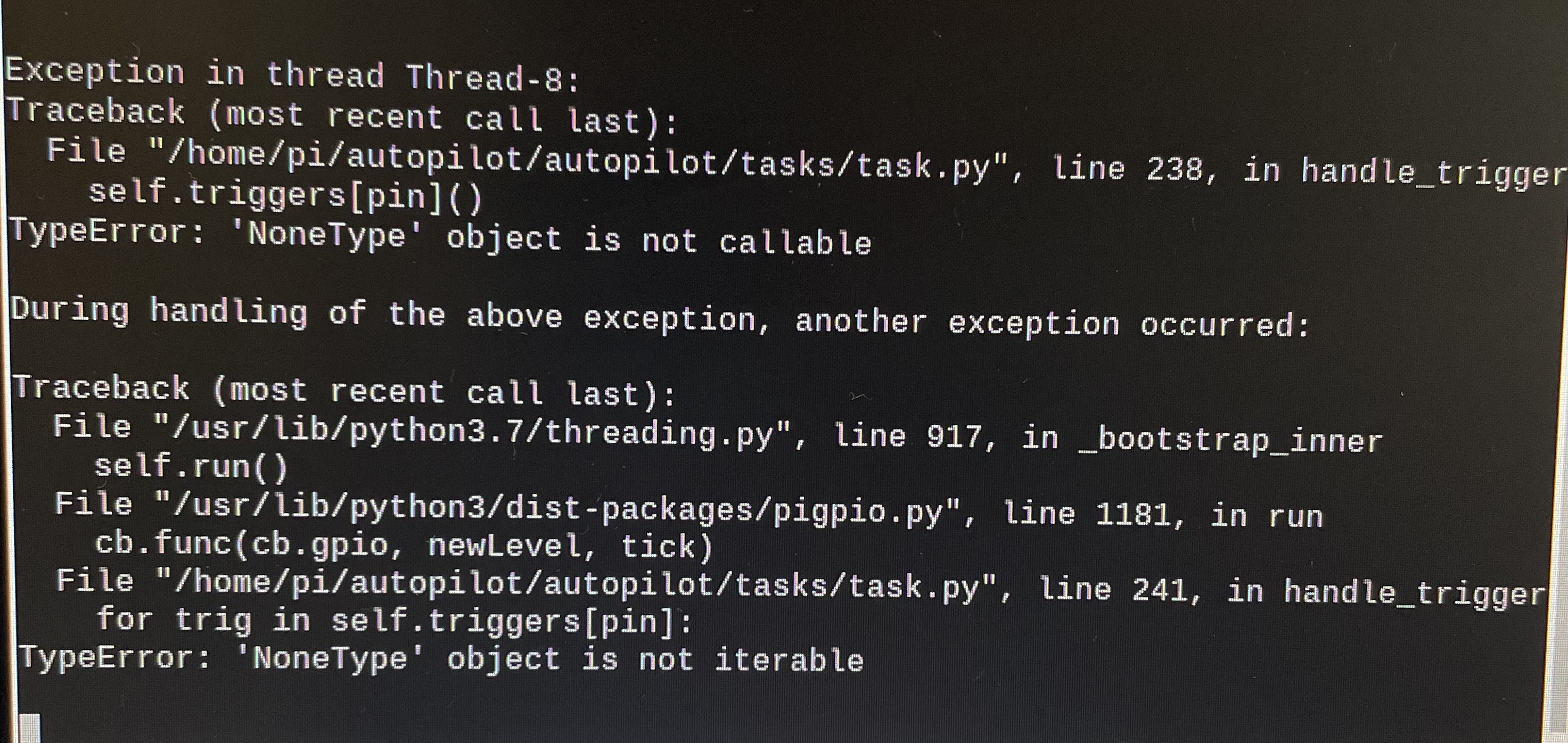 the pilot terminal throws an error about the PIN defined for the push button as it is not callable neither iterable;