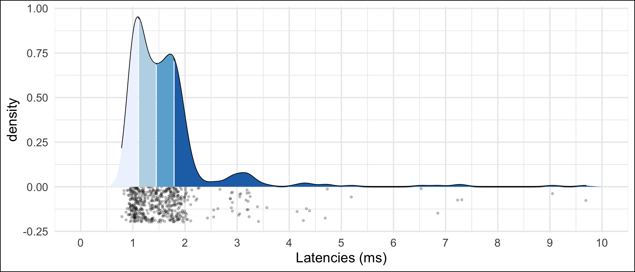 Queue.get()was way more expensive than I thought it was. Just swapped out an iterativeget()in the jack server to putting all the sound chunks in at once and then iterating them locally with a deque and we went from this, with a bunch of stray long latencies:To this reasonably tight cluster: