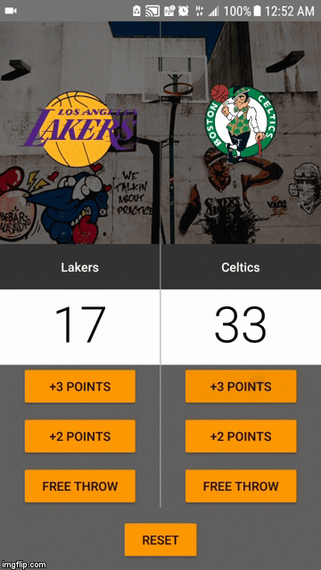 NBA Smash is a simple NBA app that stores the scores of a game between NBA's two biggest teams, that is, Boston Celtics and Los Angeles Lakers.