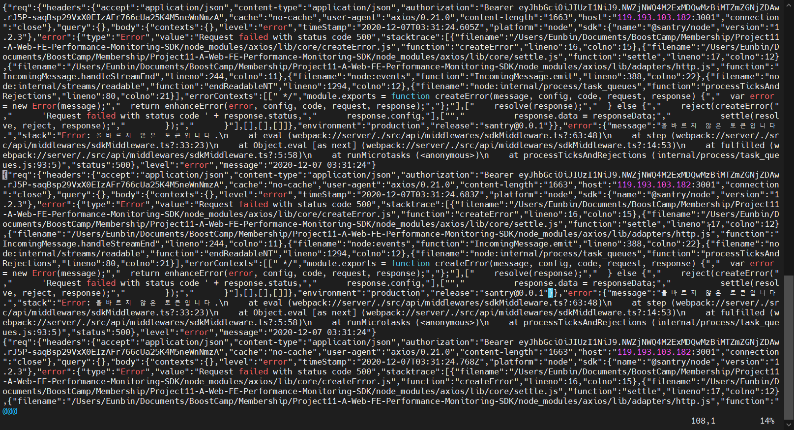 - 기존에 프로젝트를 운영하면서 에러와 기록을 로그파일로 저장합니다.