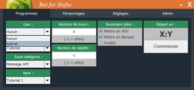 - Aucun, Test, Test, Test : Display a simple message. This program is used to test and handle the bot.