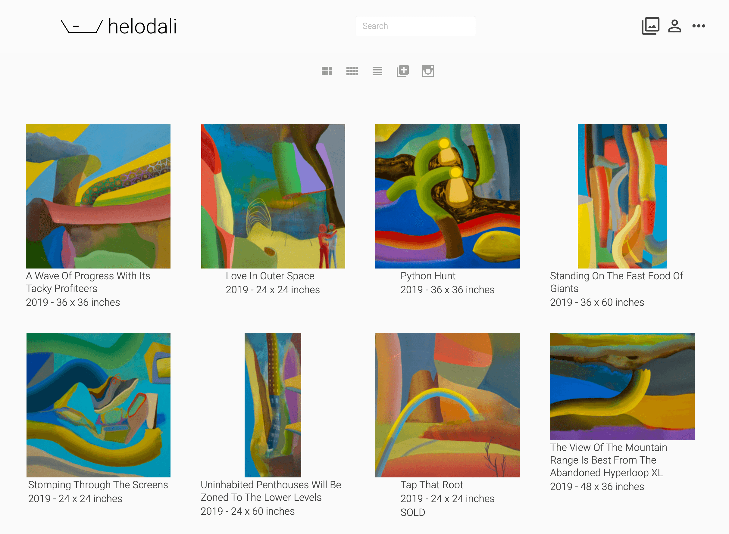 Artwork images are uploaded directly or imported from an Instagram feed and annotated according to exhibitions, purchases, etc. Basic revenue and expense is tracked as well as artist CV information. See REQUIREMENTS for more detail.
