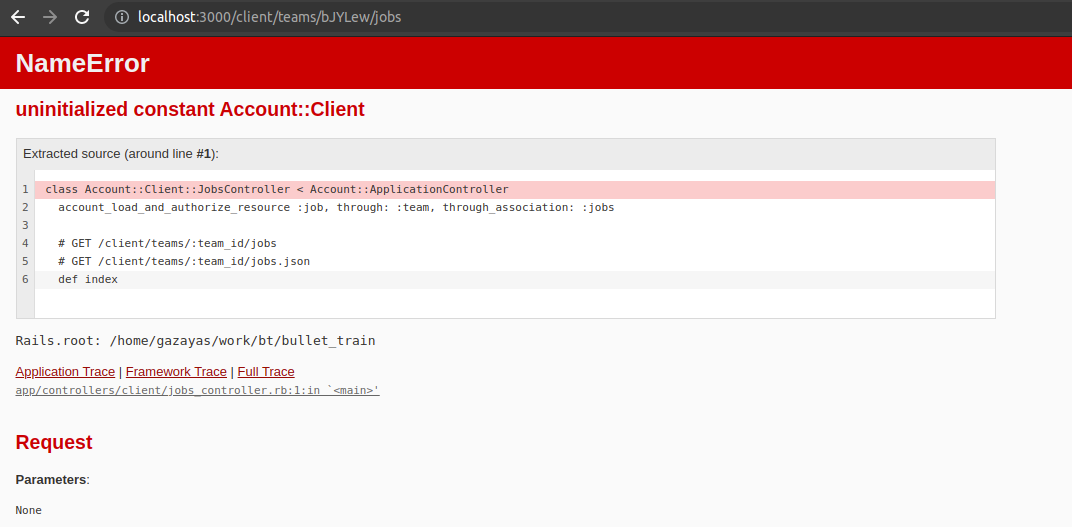 I'm not quite sure I have the solution for this one yet though, so I'll need to work with it to see what I can do. I'm somewhat reluctant to move forward thought because I know there are many namespacing options in the Bullet Train blog, and I want to make sure I'm going with the right one. Probably might benefit to make a RoutingRight now, the routes look like this: begin