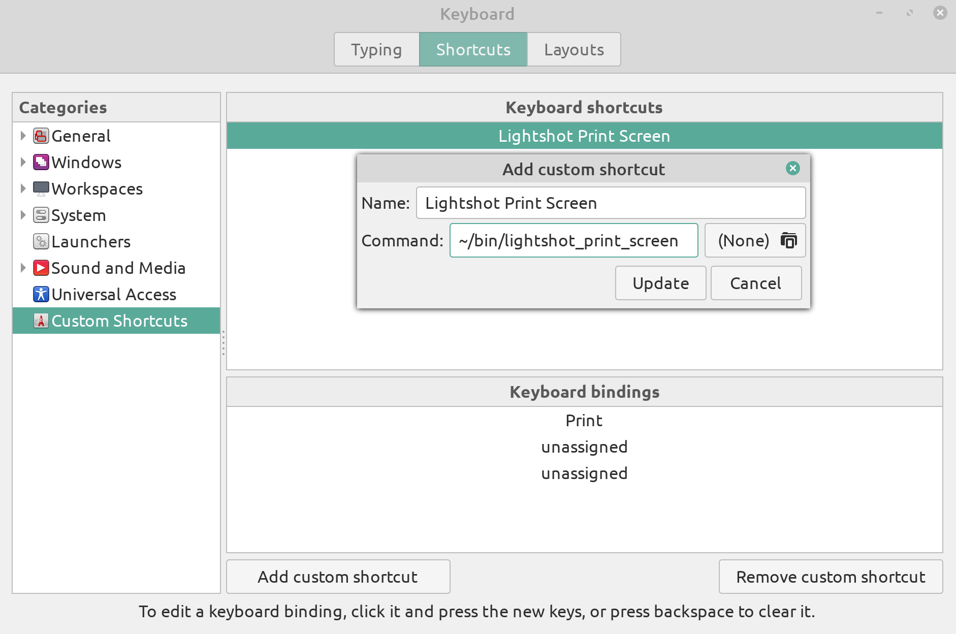 This script handles global print screen keystrokes for you to fully enjoy Lightshot screenshot tool (home page) on any Linux/Unix.