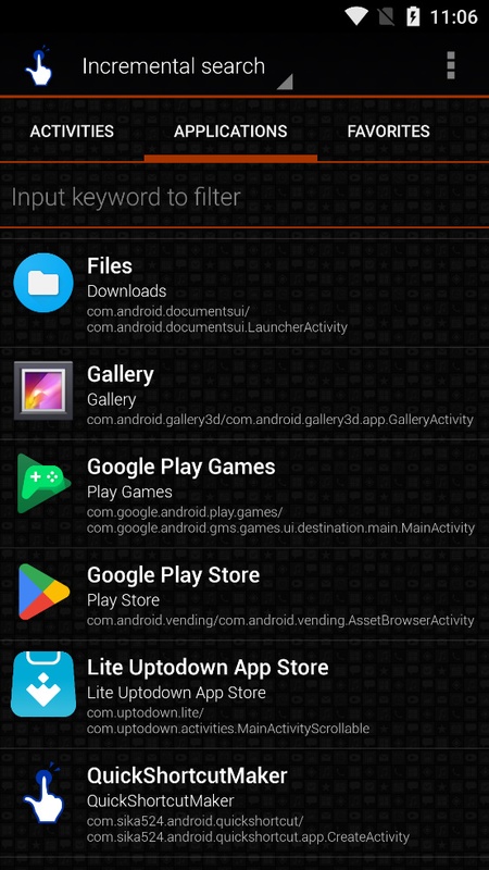 I think the implementation in the old QuickShortcutMaker is adequate as seen in the screenshot below. The one improvement is that the app should start on the Favorites tab either as a setting and/or by remembering the last state.