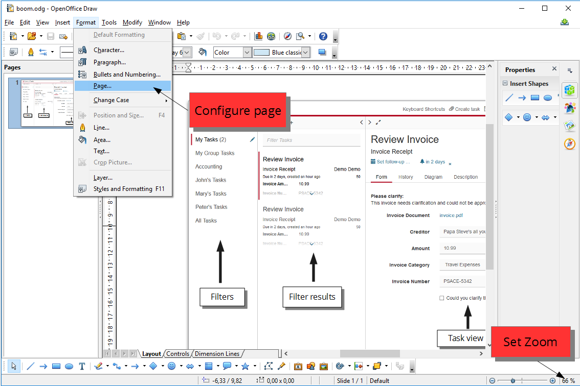 - Create a new drawing in OpenOffice Draw